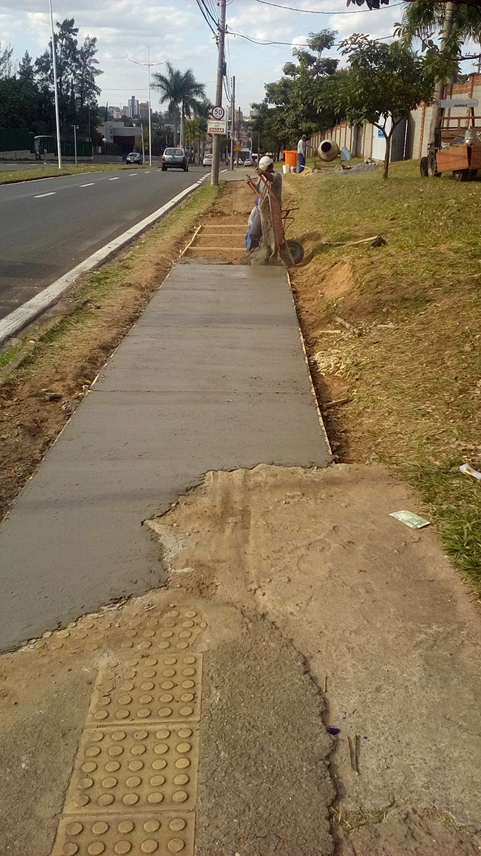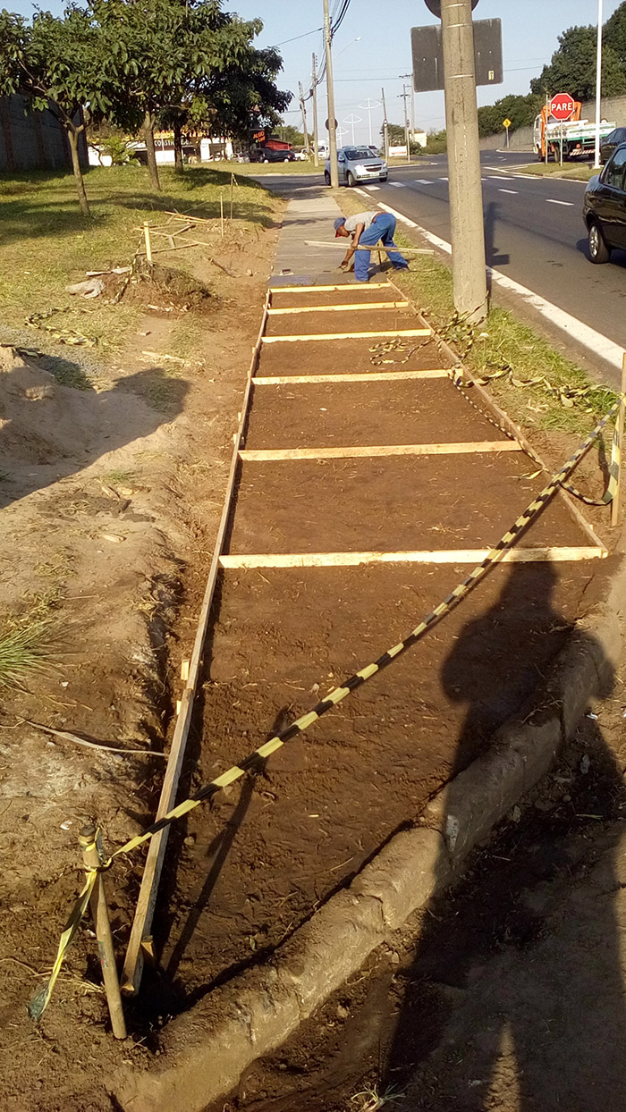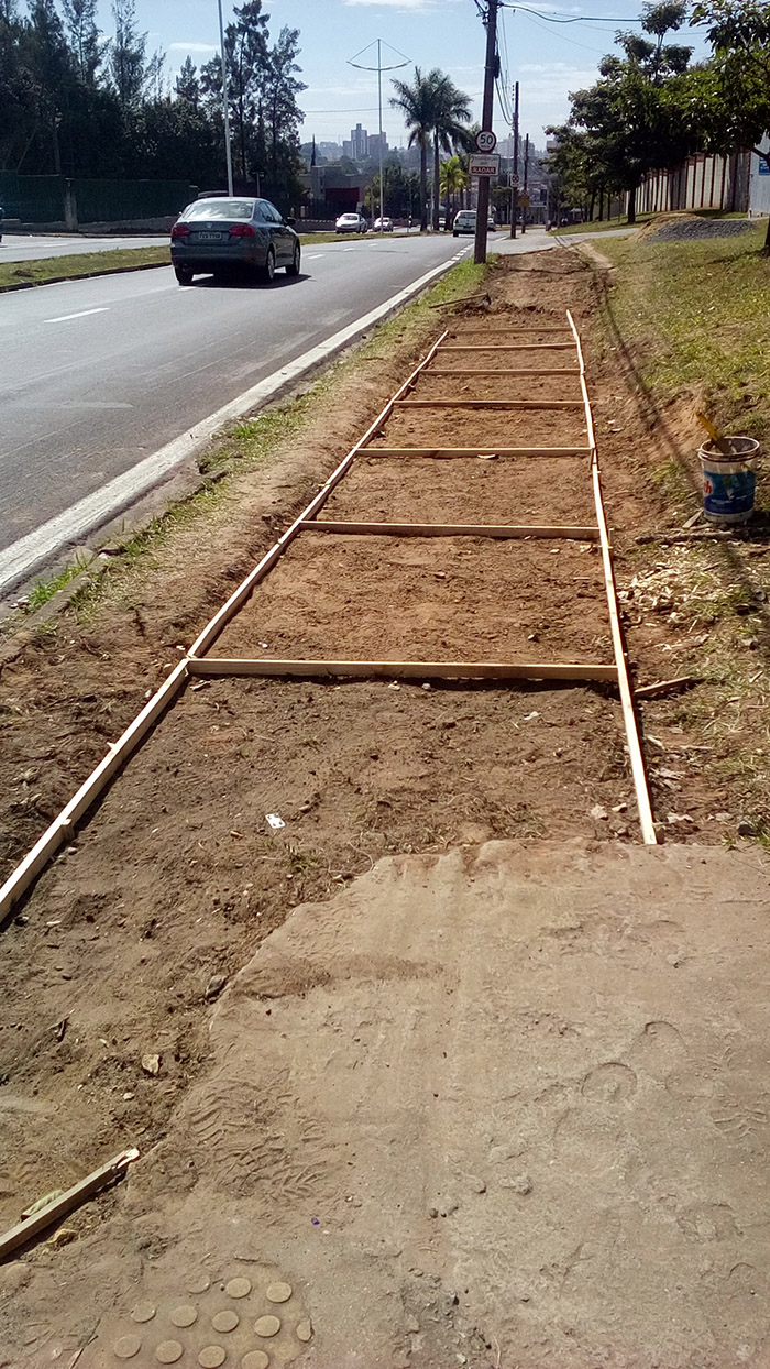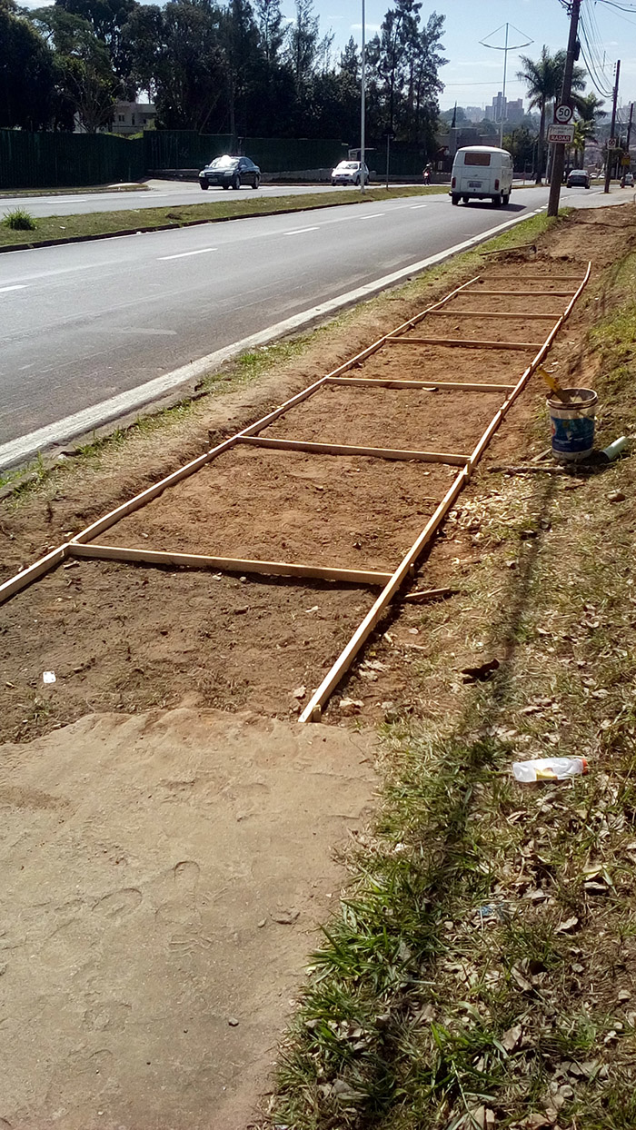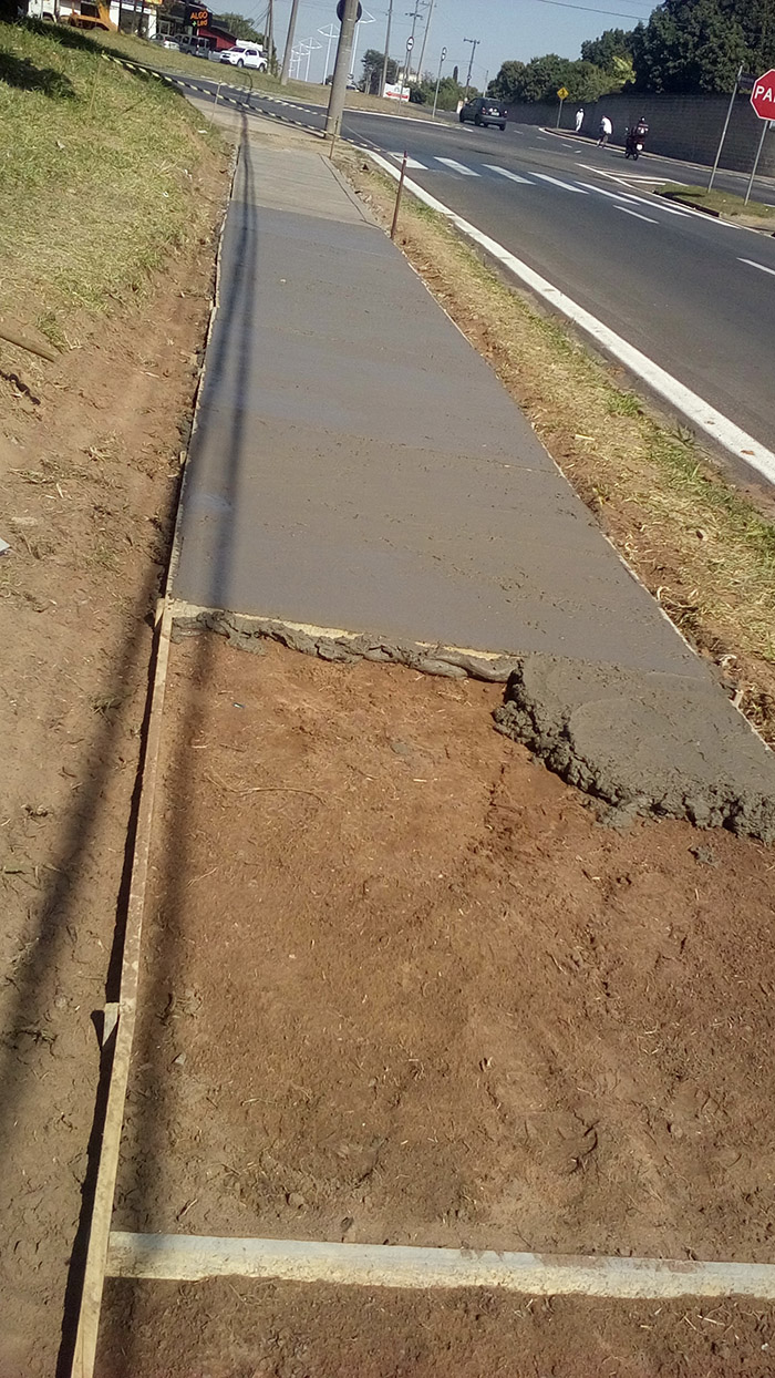 Construção de calçada externa ao lado do portão de caminhões