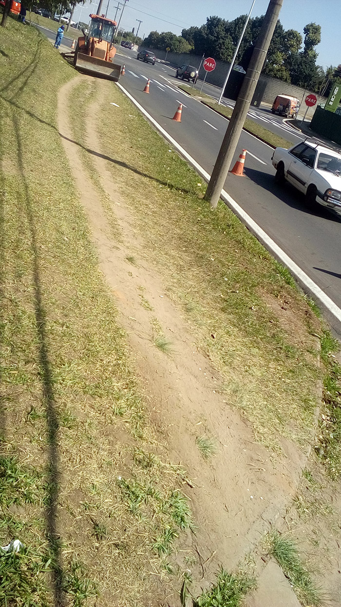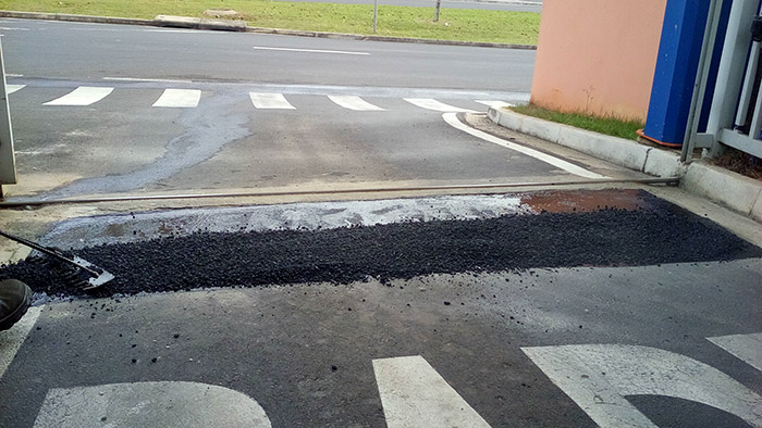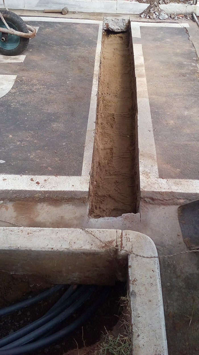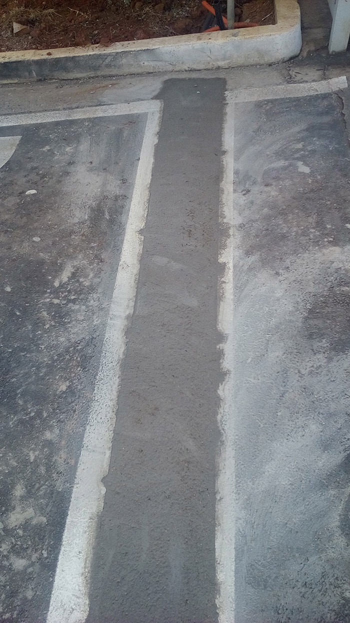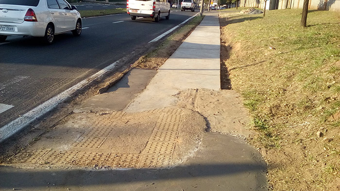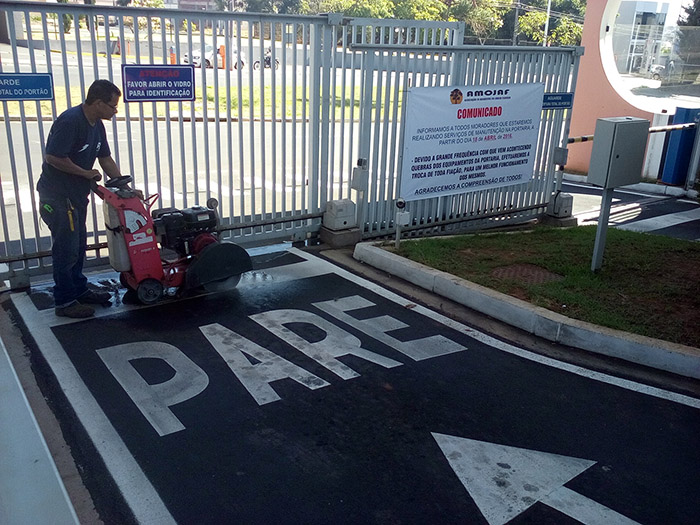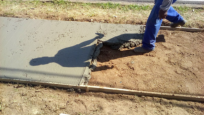 Construção de calçada externa ao lado do portão de caminhões