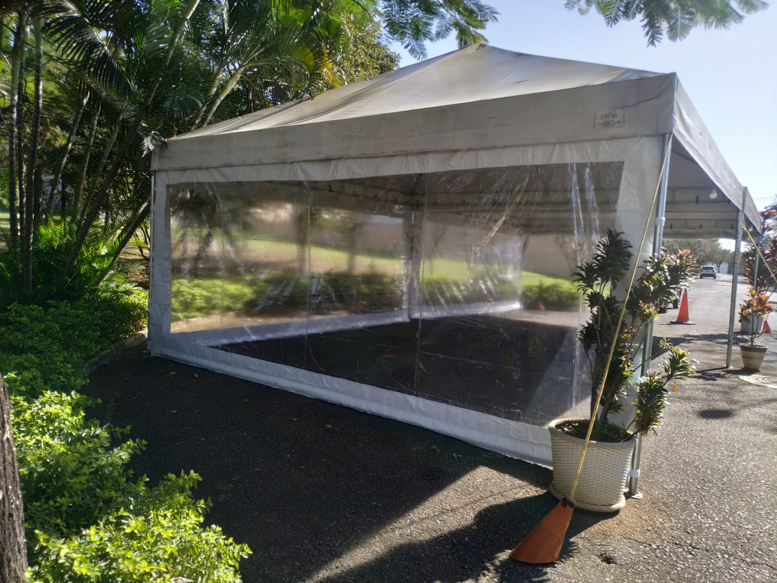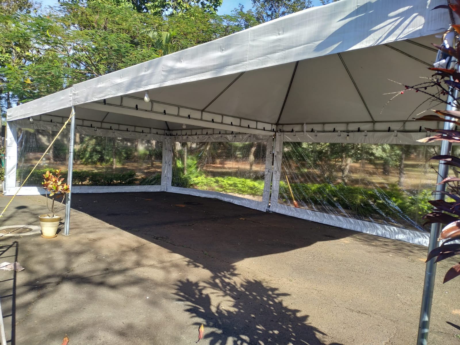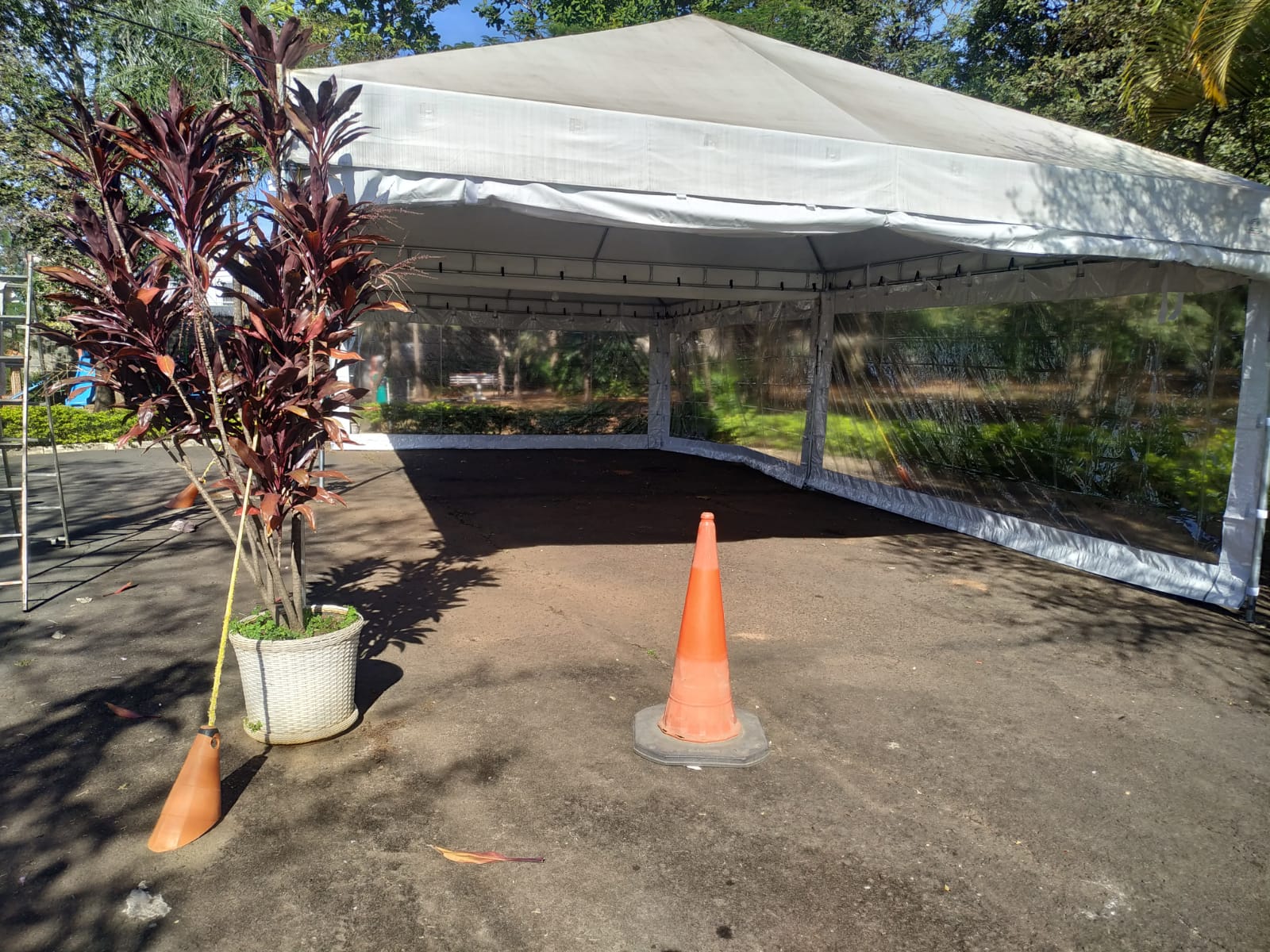 . Limpeza da lona das tendas e instalação e fechamentos laterais.